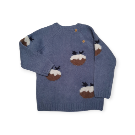 بلوفر أطفال صوف محبوكة برسومات بودينغ العيد – أزرق