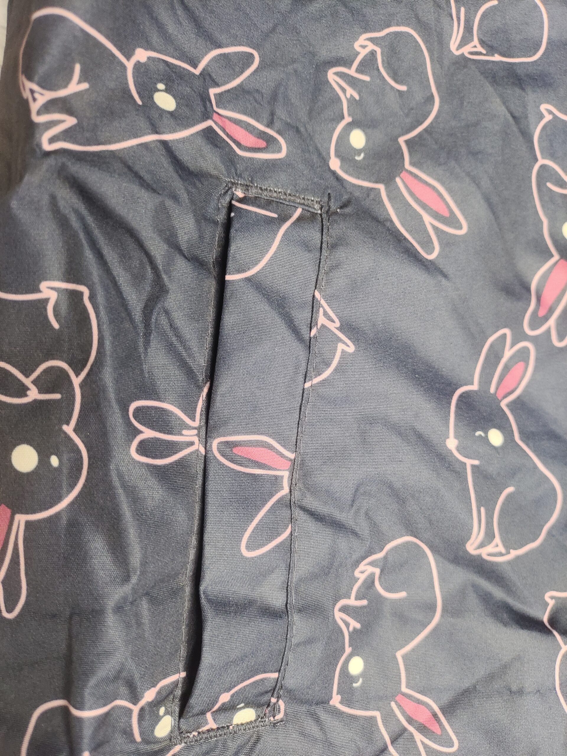 بلون كحلي أنيق ومزين بطبعة أرانب بيضاء ووردية لطيفة. مزود بكابيشو وسحاب أمامي كامل، خفيف ومريح ومثالي لأيام الربيع والخريف والأجواء الممطرة.