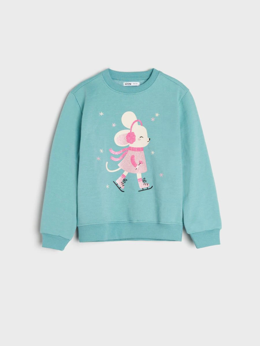 بلوفر أطفال تركواز اللون بتصميم فأرة. Sinsay