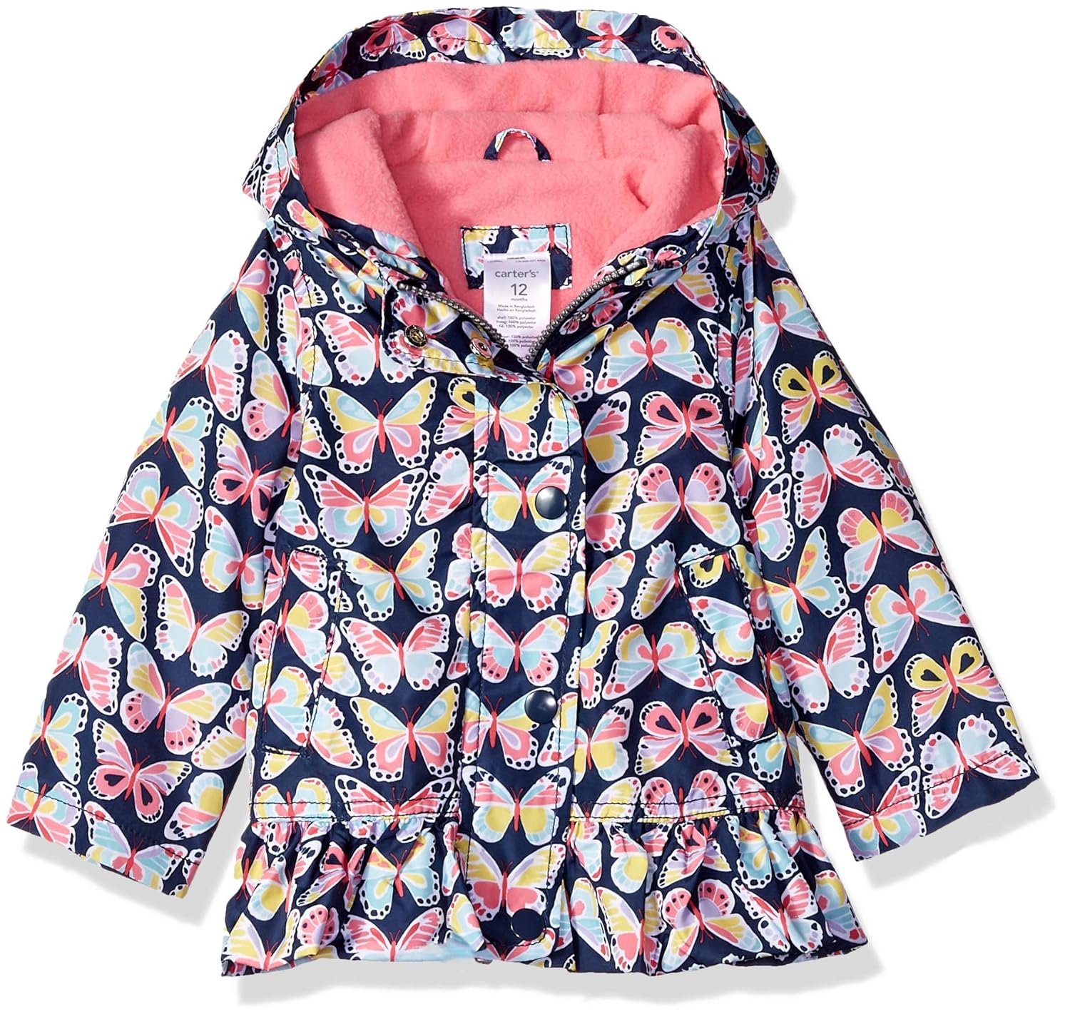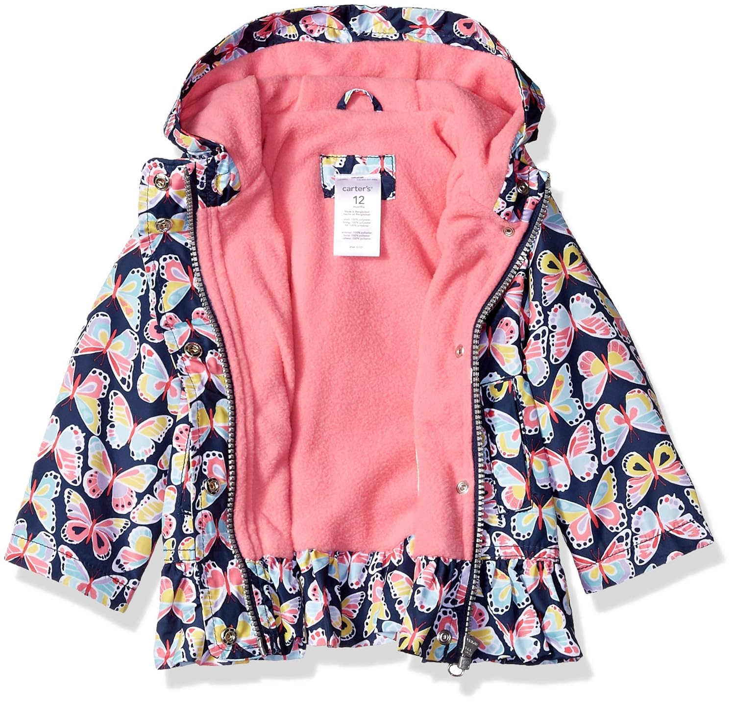 سترة مطر متوسطة الوزن مبطنة بالصوف للفتيات الصغيرات من كارتر مع طباعة فراشة باللون الأزرق الداكن ومتعددة الألوان.