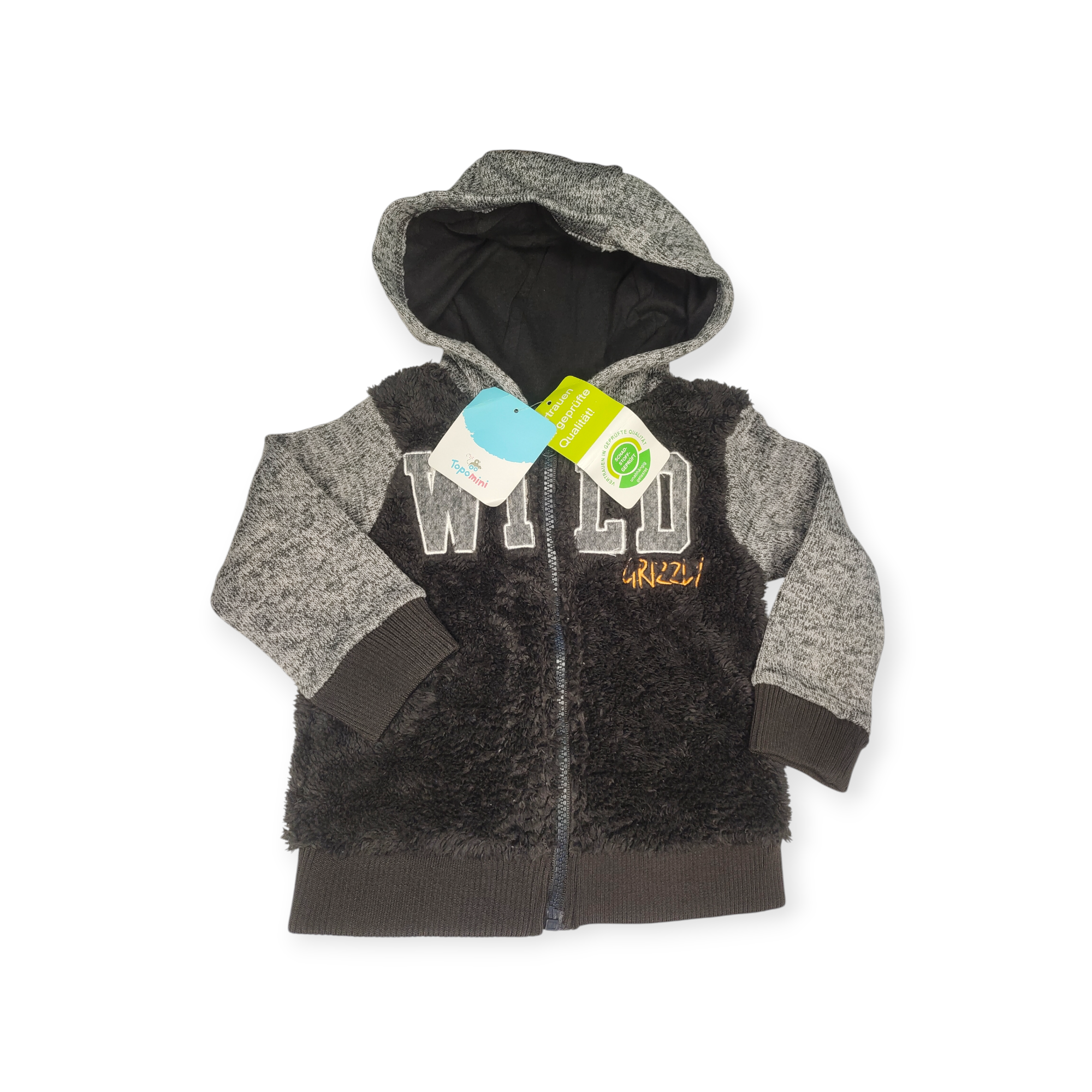 هودي أطفال جاكيت فرو بأكمام رمادية منقوشة